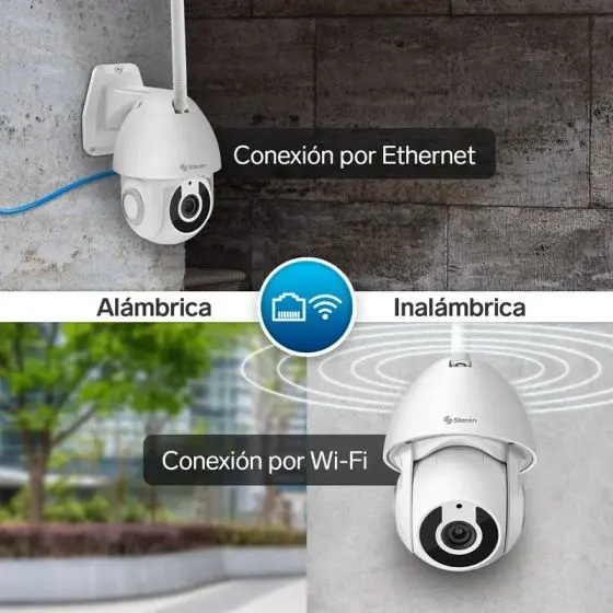 Cámara de seguridad Wi-Fi / Ethernet 3 Mpx robotizada con seguidor de movimiento para exterior